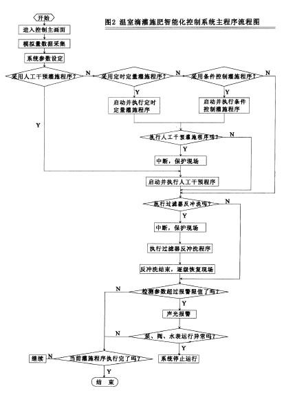 營養(yǎng)液施肥控制方式也分為人工干預(yù)、定時定量、條件控制 種。當(dāng)進行營養(yǎng)液施肥時,計算機系統(tǒng)根據(jù)選定的配方和已設(shè)定好的營養(yǎng)液pH、EC值,利用文丘里注肥器進行水肥混合,同時在線實時監(jiān)測混合營養(yǎng)液的pH、EC值,根據(jù)pH、EC設(shè)定值與檢測值之間的偏差來調(diào)整混肥閥的注肥頻率,在短時間內(nèi)使?fàn)I養(yǎng)液的檢測值和設(shè)定值之差達到允許的范圍內(nèi)。當(dāng)一組田間閥門施肥結(jié)束時.先打開下一組閥門,再關(guān)閉正在運行的閥門。當(dāng)所有需要施肥的田間閥施肥完畢,先關(guān)閉施肥泵和水泵,再關(guān)閉正在打開的所有閥門,結(jié)束施肥控制。