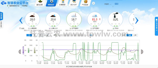 傳感器實時傳輸土壤溫度、土壤水分、空氣溫濕度、風速風向、光照強度等數據到智慧農業云平臺,用戶可隨時查看數據及相應生成的報表,無論您在何地,都可以實時看到基地的動態。