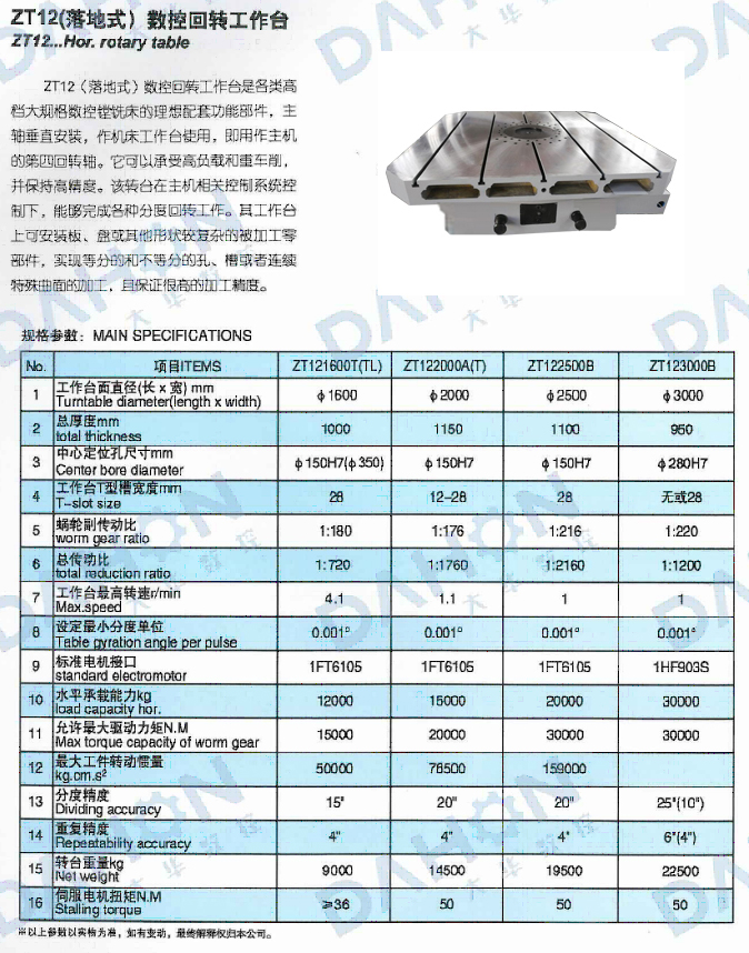 • 產品名稱: ZT12(重型)系列數控回轉工作臺