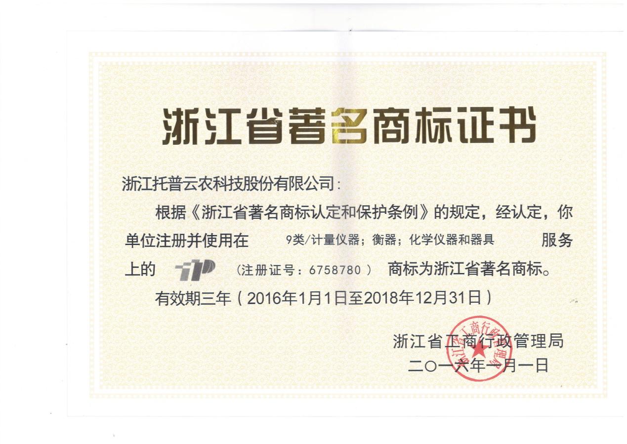 - 托普商標(biāo)榮獲浙江省著名商標(biāo)發(fā)表日期:2016-05-10 來(lái)源:托普云農(nóng) 瀏覽次數(shù):3893次
