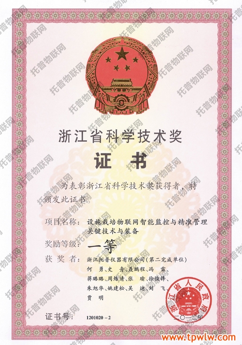 - 托普儀器科研項目榮獲2012年省科技獎一等獎發(fā)表日期:2013-08-20 來源:托普云農(nóng) 瀏覽次數(shù):20313次為了鼓勵科學(xué)技術(shù)創(chuàng)新,促進科學(xué)技術(shù)進步和社會經(jīng)濟發(fā)展,根據(jù)《浙江省科學(xué)技術(shù)獎勵辦法》,托普儀器的科研項目——《設(shè)施栽培物聯(lián)網(wǎng)智能監(jiān)控與精準管理關(guān)鍵技術(shù)與裝備》,經(jīng)過省科學(xué)技術(shù)評審委員會審定,被評為2012年度浙江省科學(xué)技術(shù)獎一等獎。