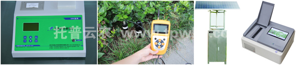 圖為:土壤養分速測儀、土壤水分測定儀、交直流兩用蟲情測報燈、農藥殘留速測儀