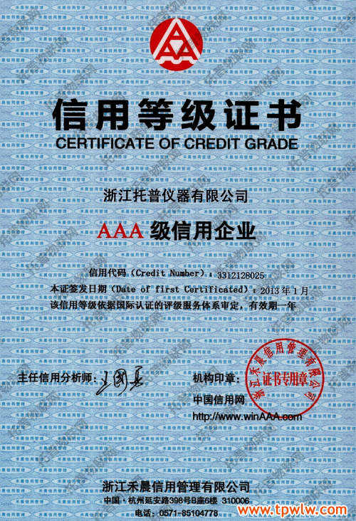 到目前為止,未發(fā)現(xiàn)本公司在工商、稅務(wù)、法律訴訟等部門有任何與之相關(guān)的不良記錄存在,而且在省財政廳采購監(jiān)督管理處也未發(fā)現(xiàn)本公司有任何相關(guān)不良處罰記錄,最終確定本公司2013年信用級別為AAA級級信用企業(yè)。