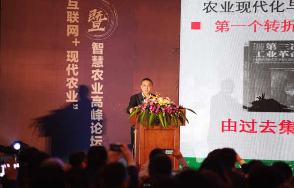 大家早上好。今天的高峰論壇很有創新,大家發現了沒有,互聯網+現代農業,立足當下,后邊還跟著智慧農業,是發展目標,跟中央文件,直接打在了現代農業后面,+放在了上面很有創新。