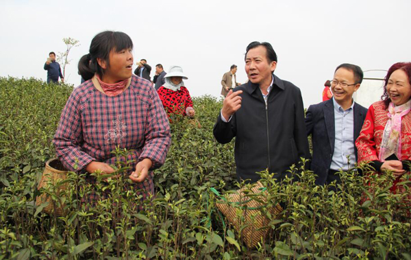 農(nóng)業(yè)部副部長陳曉華一行領(lǐng)導(dǎo)在溪龍鄉(xiāng)生態(tài)茶園考察