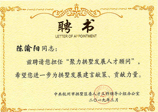 3月14日下午,為落實《拱墅區“運河英才”高層次人才引進計劃的實施意見》,杭州拱墅區政府召開“人才引領發展”高層次人才座談會,為推進人才的選拔工作,會上正式聘任了10名高層次人才代表作為拱墅區首批“聚力拱墅發展人才顧問”,我公司董事長陳渝陽先生以“國家萬人計劃科技創業領軍人才”、“科技部創新人才推進計劃科技創新創業人才”的身份有幸入選其中。