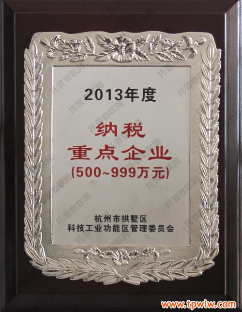 圖為:托普儀器在拱墅區2014年度工作會議中所獲獎牌