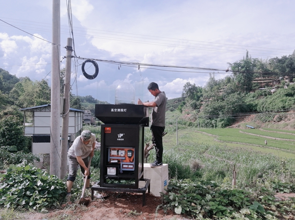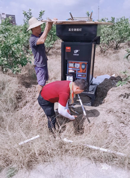 總而言之,目前我國(guó)糧食生產(chǎn)形勢(shì)依舊嚴(yán)峻,重大病蟲(chóng)害的防控不容懈怠。 6月30日,托普云農(nóng)售后服務(wù)部的工作人員在云南省江城縣完成了最后一臺(tái)高空測(cè)報(bào)燈的安裝,代表著托普云農(nóng)順利完成了本次農(nóng)業(yè)農(nóng)村部下達(dá)的“三區(qū)三帶”布防任務(wù)。 高空測(cè)報(bào)燈是一款利用燈誘吸引遷飛性蟲(chóng)害的測(cè)報(bào)燈,針對(duì)草地貪夜蛾的生物習(xí)性做了技術(shù)匹配與功能優(yōu)化,可在防控工作當(dāng)中輔助植保人員完成草貪測(cè)報(bào)工作,為全國(guó)布防一盤棋做好基層數(shù)據(jù)采集工作。