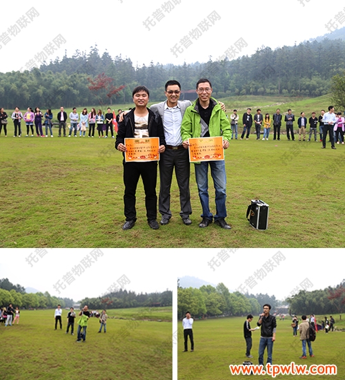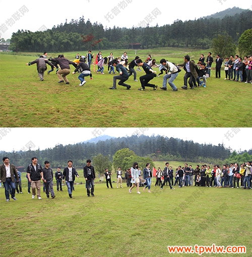 上午的拓展活動在園中翠綠色的大草坪上展開,托普儀器近300人的龐大隊伍被分成了10個小組進行團體比賽。兩場比賽分別為“快樂抱抱爆”和“穿越生死網”,雖然游戲的名字和比賽的方式不同,但同樣都是關于速度與時間的較量。