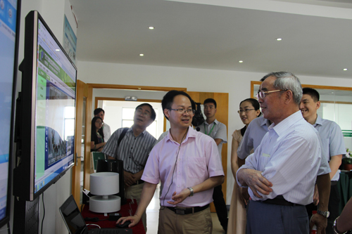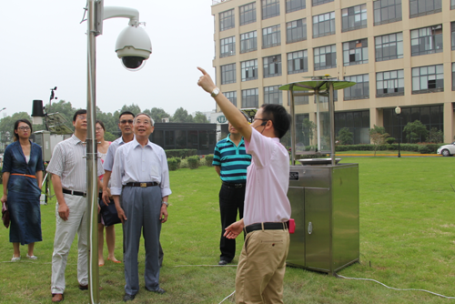 圖為:調研組查看托普儀器室外監測點