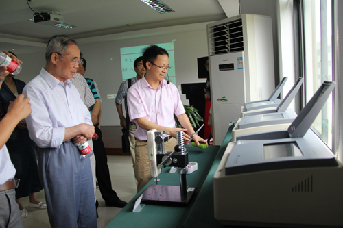 在一樓大廳的公司榮譽墻前,托普儀器陳渝陽總經理為陳耀邦部長一行領導簡單介紹了公司成立十年來所取得的不錯成績。隨后,調研組分別參觀了儀器設備展覽室、實驗室和研發中心,每一個考察點都是助力現代農業發展的科技成果,給予陳耀邦部長調研組全體成員足夠的吸引力與震撼。