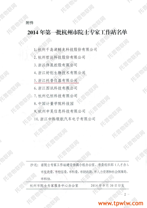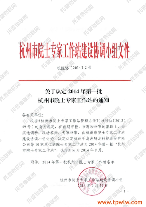 近日,《關于認定2014年第一批杭州市院士專家工作站的通知》頒發,認定托普儀器在內的10家單位院士專家工作站為2014年第一批杭州市院士專家工作站。