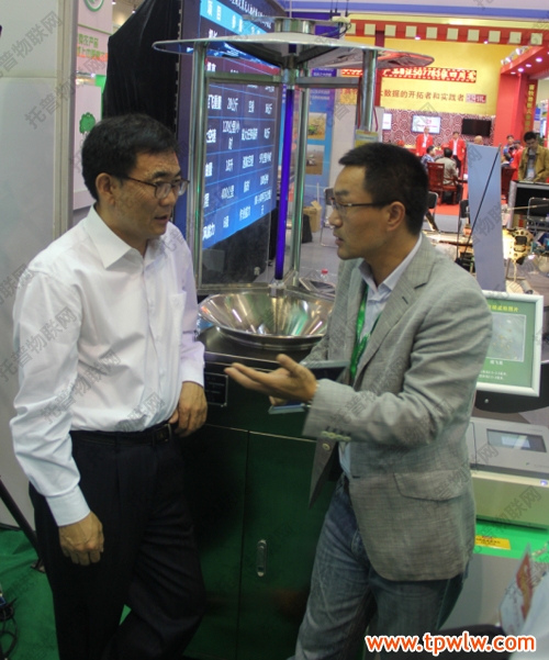 農交會期間,張合成司長一行親臨托普儀器展臺考察指導工作,托普儀器陳渝陽總經理詳細介紹了此次展出的農業物聯網“四大系統”平臺:設施農業自動監測與控制平臺、農作物病蟲害監測預警信息平臺、土壤墑情監測與預警信息平臺、食品安全監控與追溯信息系統。張合成司長表示,信息化技術是現代農業的重要發展方向,應加強研究力度,提高整體應用水平。