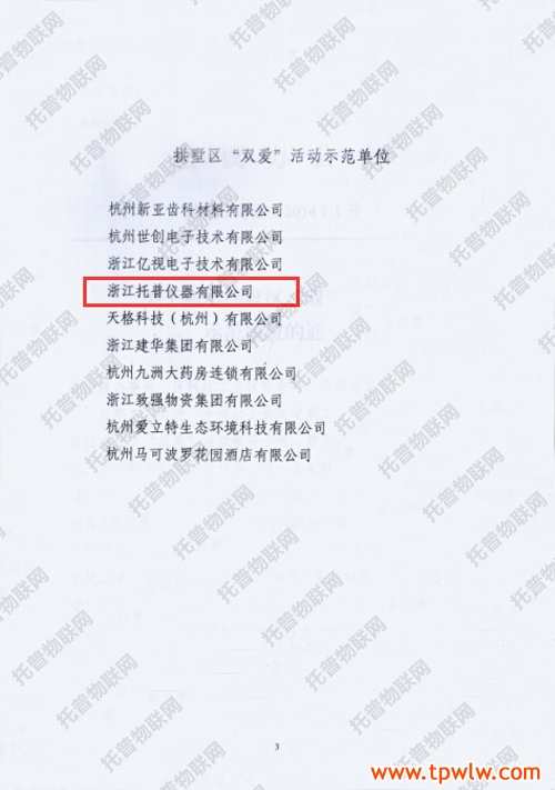 近日,《關于命名拱墅區“雙愛”活動示范單位的通報》文件頒布,托普儀器被評選為拱墅區“雙愛”活動示范單位。