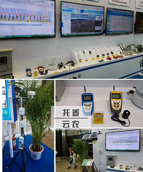 圖為:托普云農(nóng)參展的物聯(lián)網(wǎng)系統(tǒng)及部分儀器