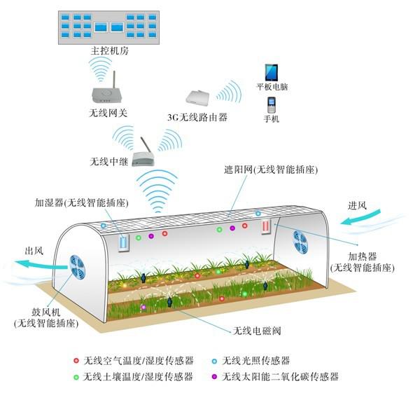 3)設備控制系統(tǒng):通風,遮陽;加濕,無線智能插座