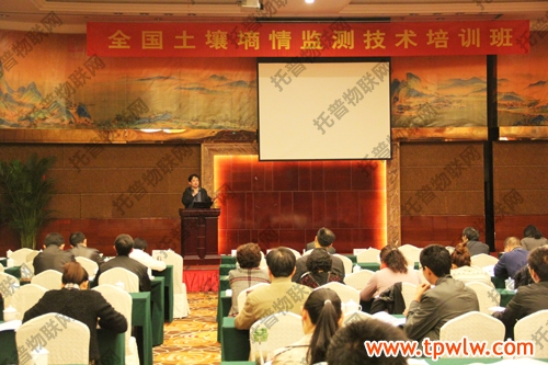 2013年3月5日,全國土壤墑情監測技術培訓班在杭州開班。本次會議由全國農技推廣中心主辦。全國各省市土肥站代表120余人參加了此次會議。會議由全國農技推廣中心節水處高祥照處長全程主持,會議上高處長重點強調了在農業生產中節水工作的重要性,強調了科學用水,水肥一體化等措施對節水增糧的重要性,提出了土壤墑情監測是我們進行科學用水,實施水肥一體化策略的重要依據,確立了土壤墑情監測工作為目前工作的重心。