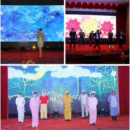 精彩紛呈的“新故事,新起點(diǎn)”2016新春年度盛典在四位支持人的深情開場中拉開序幕。熱情歡樂《金獅送福》領(lǐng)先開演,為大家送來了新年的祝福;勁舞《說愛就愛》,激情火爆,樂觀向上的精神風(fēng)貌展現(xiàn)得淋漓盡致;研發(fā)團(tuán)隊的舞臺劇《電影院那些事》演繹了公司研發(fā)人員豐富飽滿的內(nèi)心世界。一首《飄雪》,瞬間將我們就帶入了純情浪漫模式。古箏演奏,優(yōu)雅悠揚(yáng);激情昂揚(yáng)的《保衛(wèi)黃河》將整個晚宴推向高潮;銷售部老男人們的《群魔亂舞》讓大家更是樂的開懷暢飲!期間的互動環(huán)節(jié)及歡樂大抽獎讓全場氛圍熱烈而又充滿期待,高潮迭起!