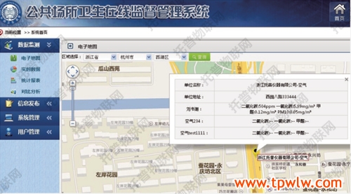 公共場所衛生是關系到一個國家或一個地區人民大眾健康生活的公共事業。隨著時代的發展,空氣質量與水污染等問題的日益嚴重,大眾對公共場所衛生問題也越來越重視。托普公共場所衛生在線監測系統包括:登陸窗口、數據監控、信息發布、系統管理、用戶管理五個部分,為政府執行國家衛生法律法規、企業提供優質服務、公眾享受健康生活方式提供公共場所衛生情況監測、發布、監督的透明信息平臺。
