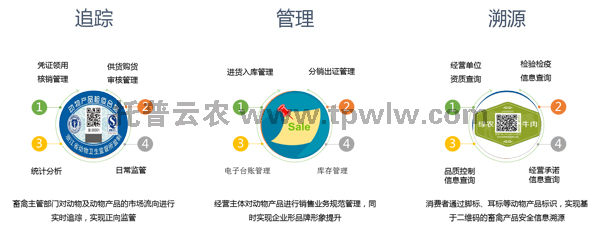 ?????? 系統(tǒng)采用新一代物聯(lián)網(wǎng)及二維碼技術(shù),通過“一套管理系統(tǒng),一張分銷憑證,一個二維碼,一條追溯鏈條”,實現(xiàn)動物及動物產(chǎn)品分銷全程追溯,保障動物及產(chǎn)品質(zhì)量安全全程監(jiān)管和溯源。
