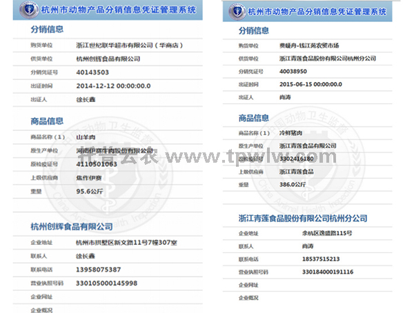 ?????? 為全面提升杭州地區(qū)動物產(chǎn)品的質(zhì)量安全水平,切實保障動物產(chǎn)品食用安全和公共衛(wèi)生安全,浙江托普在杭州市畜牧獸醫(yī)局的大力支持下,于2014年底建設(shè)和實施“動物產(chǎn)品分銷溯源”系統(tǒng),實現(xiàn)對動物產(chǎn)品流通全程監(jiān)管和溯源,構(gòu)建杭州市動物產(chǎn)品質(zhì)量安全追溯體系。