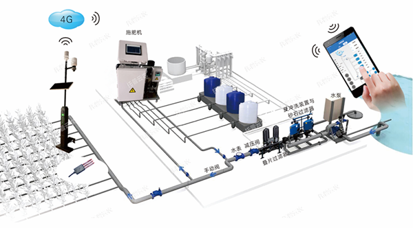 3、水肥一體化智能控制系統(tǒng):根據(jù)檢測(cè)土壤水分、作物種類的需肥規(guī)律,設(shè)置周期性水肥計(jì)劃實(shí)施輪灌。施肥機(jī)會(huì)按照用戶設(shè)定的配方、灌溉過(guò)程參數(shù),自動(dòng)控制灌溉量、吸肥量、肥液濃度、酸堿度等水肥過(guò)程的重要參數(shù),實(shí)現(xiàn)對(duì)灌溉、施肥的定時(shí)、定量控制,充分提高水肥利用率。實(shí)現(xiàn)節(jié)水節(jié)肥、改善土壤環(huán)境,提高作物品質(zhì)。